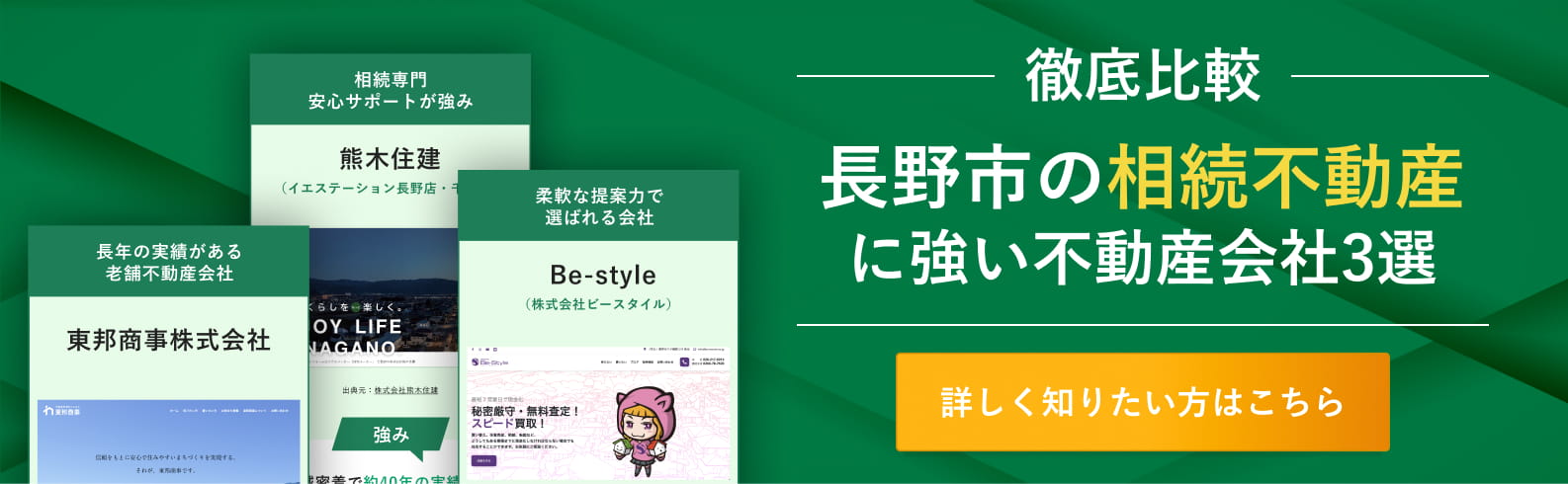 長野市内の不動産会社の中から、相続不動産の取扱実績が豊富で、高い評価を得ている3社を厳選してご紹介。